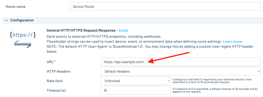 After getting your Notehub route working with webhook.site, switching a route to use a custom endpoint is as easy switching the URL. Let's see how it works.