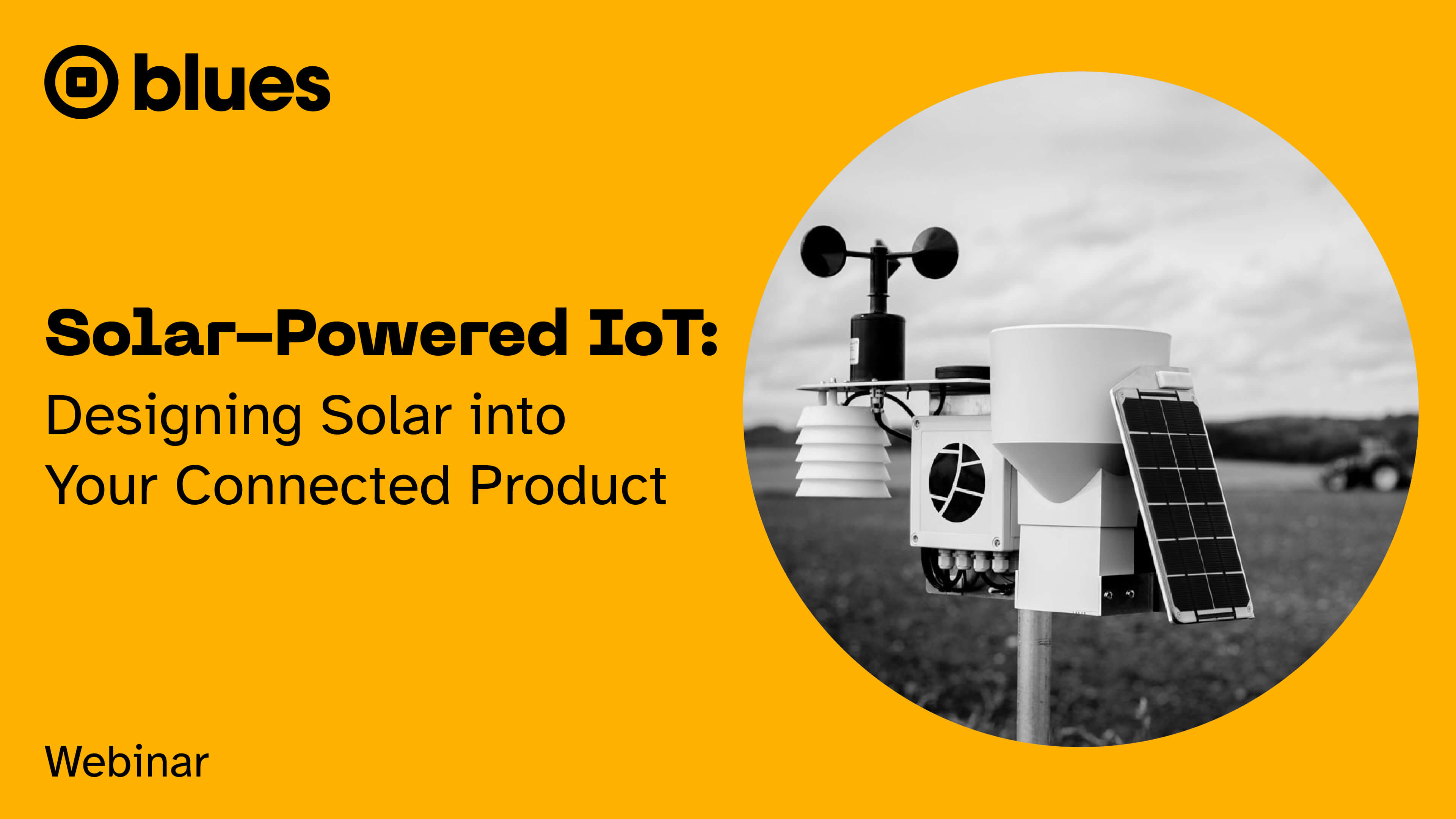 At Blues we hold regular webinars to release products, introduce partners, and interact with the broader Blues developer community. Join us live to ask questions and get involved!