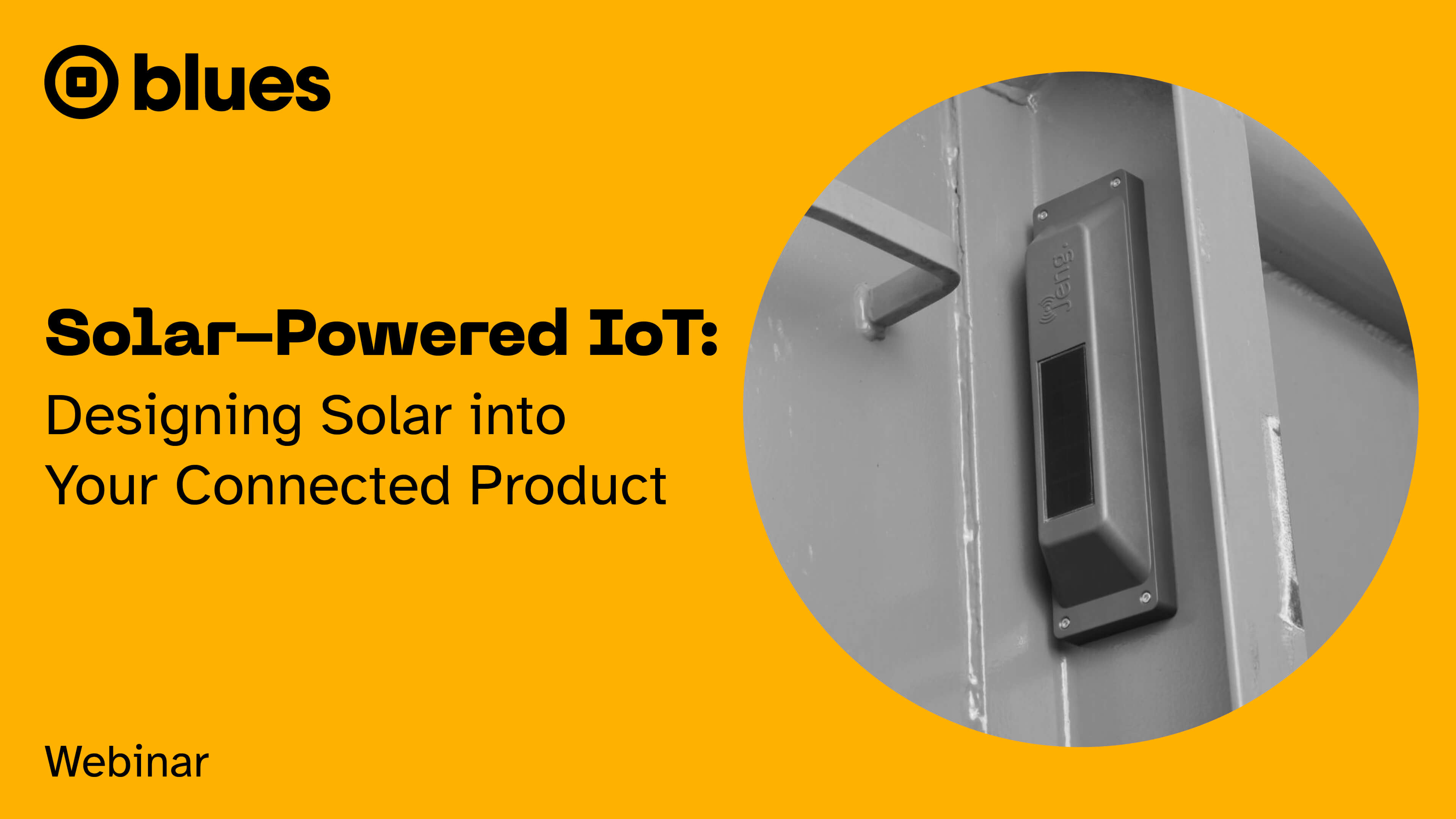 At Blues we hold regular webinars to release products, introduce partners, and interact with the broader Blues developer community. Join us live to ask questions and get involved!